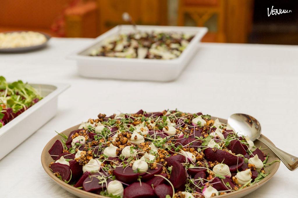 Kiitos tuhannesti häidemme cateringistä. Kaikki sujui loistavasti! Etukäteen saimme mainioita ehdotuksia menuun ja olitte kärsivällisiä ja avuliaita asiakaspalvelijoita. Menumme oli gourmet-menestys ja ruoka niin hyvää, ettei sanotuksi saa. Kaikki vieraamme olivat mauista ja esillepanosta haltioituneita. Tyylikäs tarjoilutapanne oli vielä piste i:n päälle. Luomuainesten ja lähituotteiden käytöstä erityistä kiitosta. Illan mittaan henkilökuntanne palveli ammattimaisesti myös sellaisissa käänteissä, mitä emme olleet osanneet ennakoida.