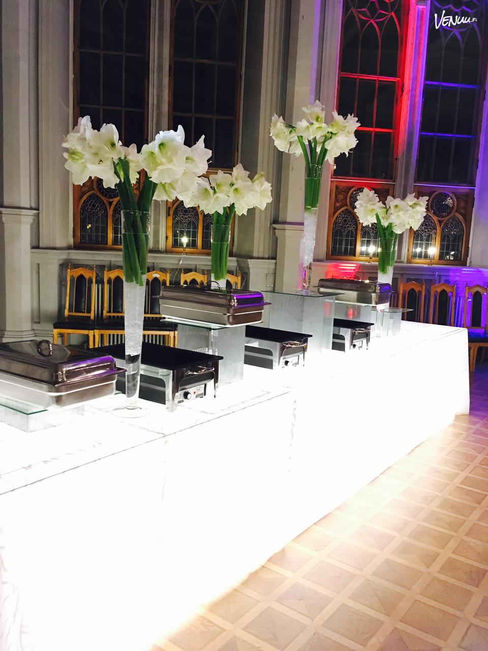 Kaikki työntekijät olivat erittäin joustavia ja ammattitaitoisia ja kommunikointi sujui ongelmitta menuuta suunnitellessa. Itse tapahtuman aikana he ottivat kaiken huomioon ja osasivat ennakoida tilanteita. He jopa pystyttivät pyytämättä drinkkipöydän pystyyn! Isot kiitokset ja en voi muuta kuin suositella heitä!