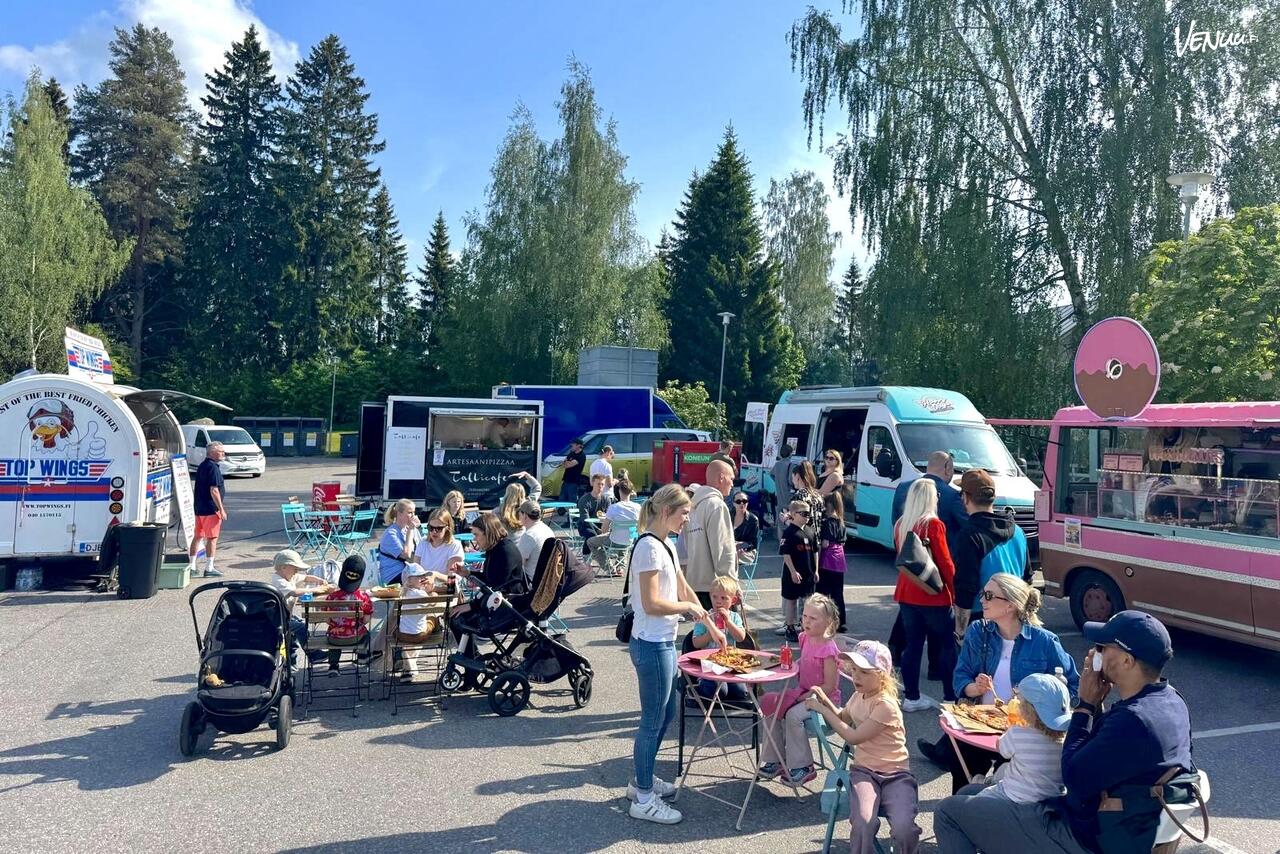 Tapahtuma pysähtyy tutusti lähikaupan pihalla – sinne kannattaa suunnata koko perheen voimin herkuttelemaan ja viihtymään! 👋