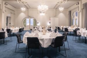 This iconic hotel building features not only modern hotel rooms but also an amazing party venue. The fully equipped banquet hall works perfectly for company party – even for a bigger one!
