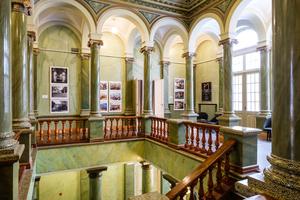 Lumoavassa vaaleanpunaisessa kivitalossa sijaitseva tasokas ja historiallinen juhlatila. Elegantteihin salonkeihin mahtuu isokin juhlaporukka.