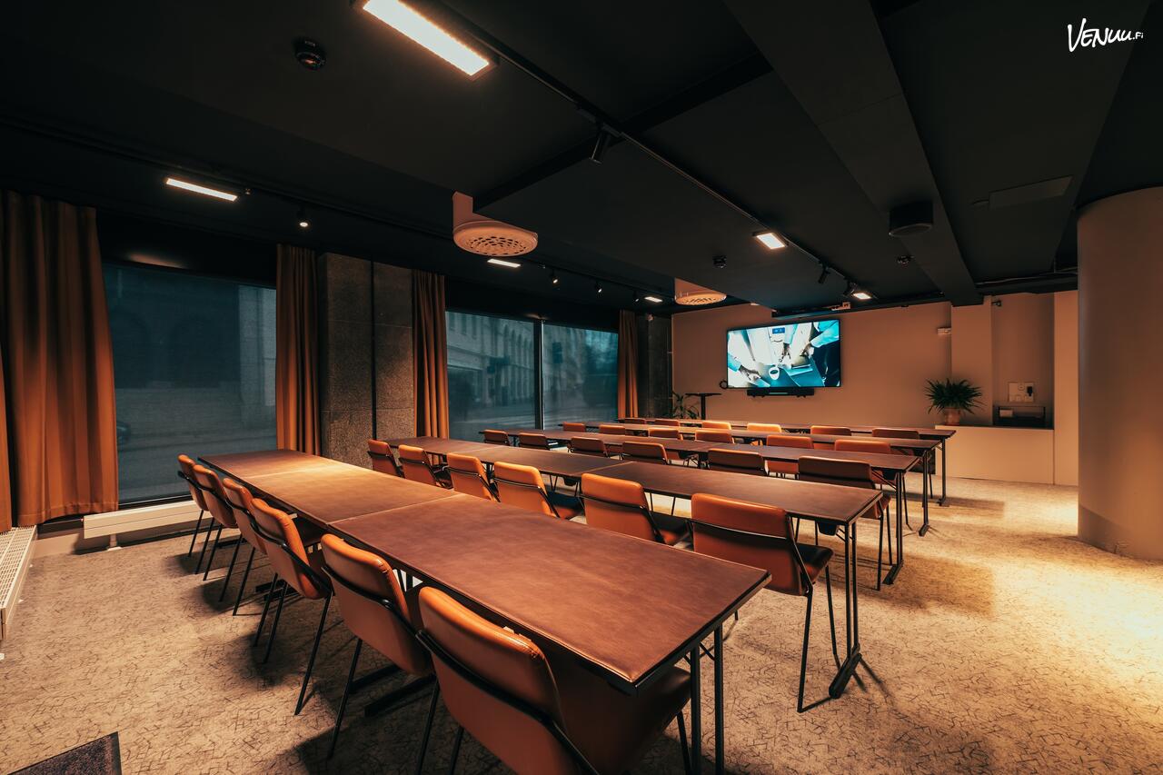 Suuret ikkunat täyttävät tilan runsaalla luonnonvalolla, mikä tekee siitä erinomaisen ympäristön luovuutta vaativille kokouksille. Tila on kuitenkin suunniteltu monipuoliseksi: päivän tehokkaat kokoukset ja strategiset tiimipäivät taittuvat vaivatta tunnelmallisiksi illallisiksi tai ikimuistoisiksi juhliksi. Tilaan mahtuu mukavasti jopa 60 vierasta tilaisuuden luonteesta riippuen.