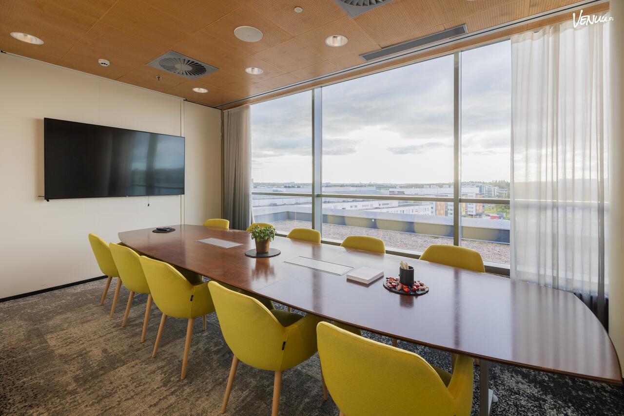 Tila sijaitsee hotellin ylimmässä kerroksessa, joka tarjoaa kokousasiakkaille unohtumattoman ympäristön ja huikeat näkymät yli kattojen.