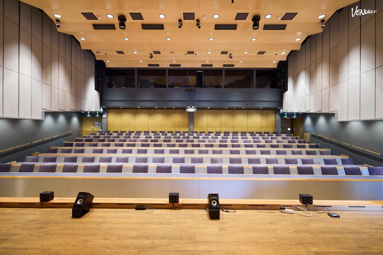 Laskevia asiakaspaikkoja auditoriossa on 160 joiden lisäksi on mahdollisuus noin 60 tasalattialla olevalle lisäpaikalle.