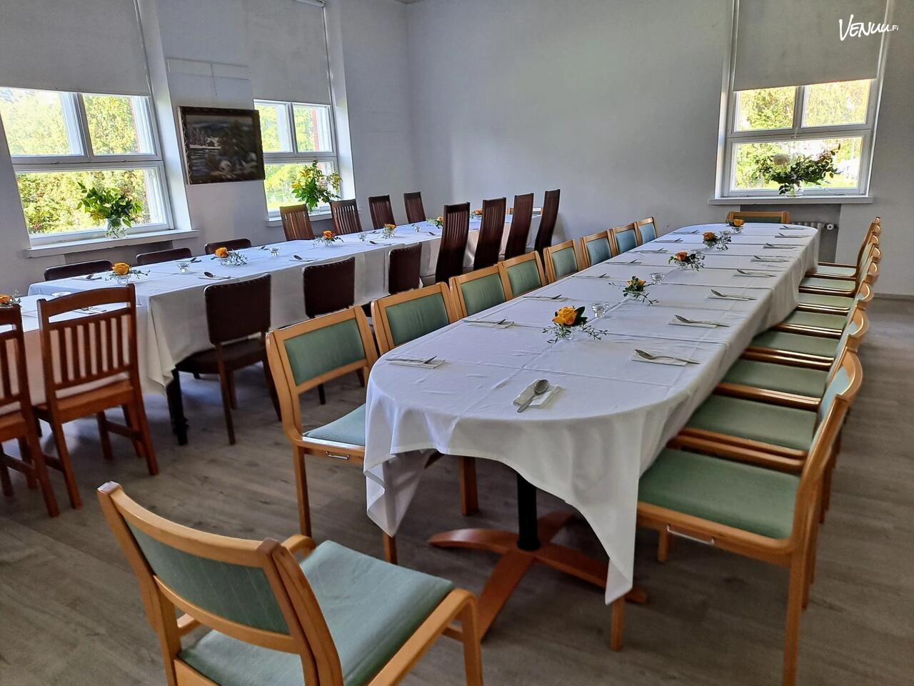 Monitoimitila voidaan kalustaa käyttäjän tarpeiden mukaan, jolloin se mukautuu niin työpajoihin, kursseihin kuin pieniin juhlatilaisuuksiinkin. Tämä tekee siitä monipuolisen paikan, joka elää ja muuttuu tilaisuuden mukaan.