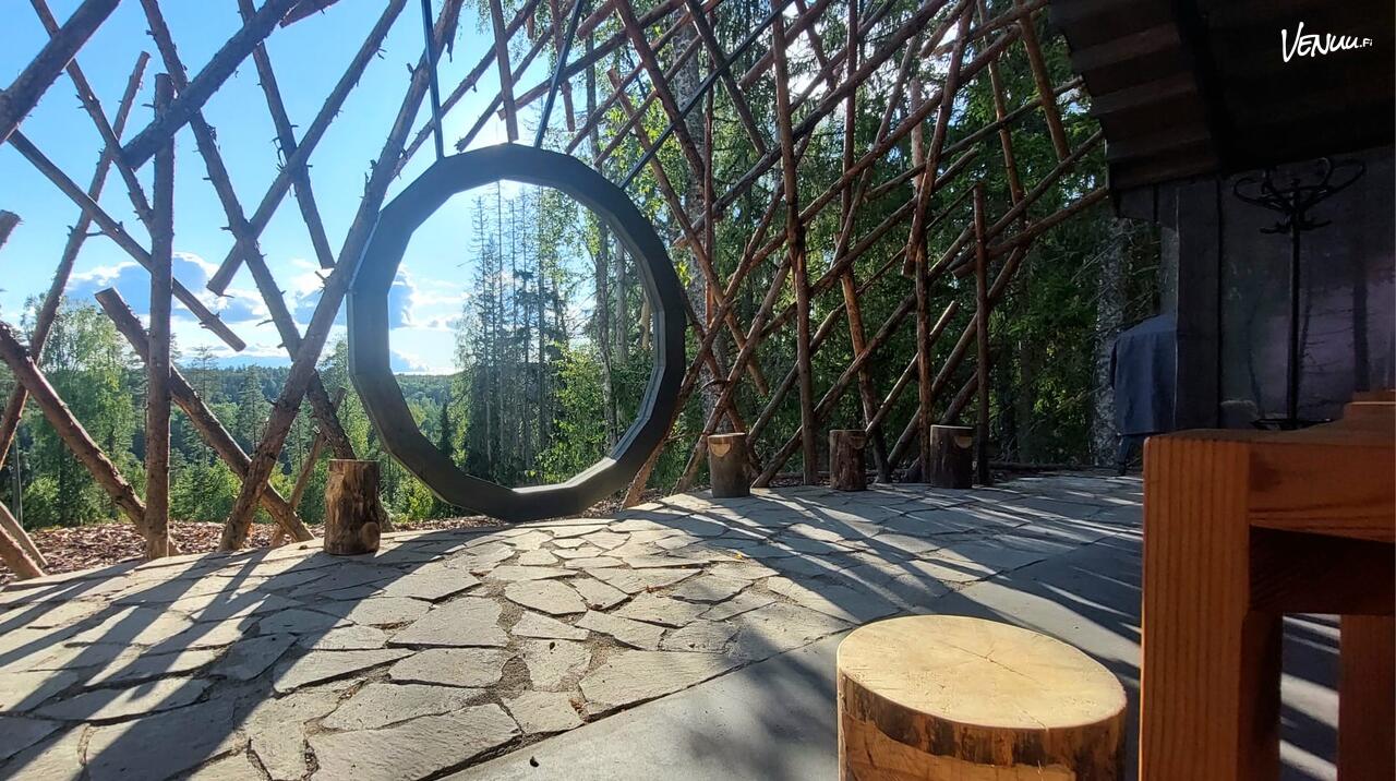 Tilassa on käytössä 4 hengen pöydät ja penkit sekä "pölkkytuoleja" pöytien päihin. Kokoustilana maksimimäärä on 24 henkeä ja illallisella 32.
