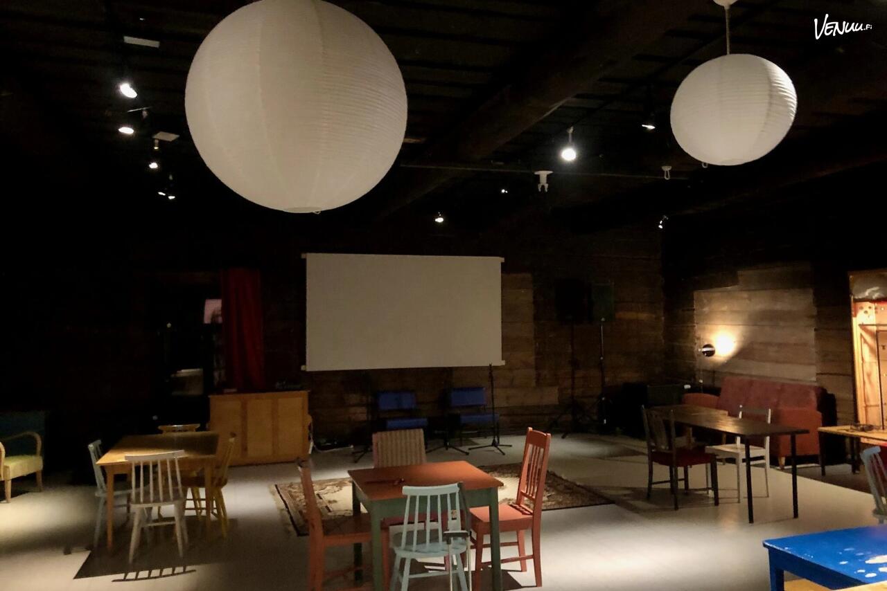 Tilaa saa muokata tilaisuuden mukaan. Tuoleja, pöytiä ja sohvia löytyy eri tyylisiä. Omatoimikäyttäjälle tiedoksi, että kalusteita säilytetään tilan vintillä.