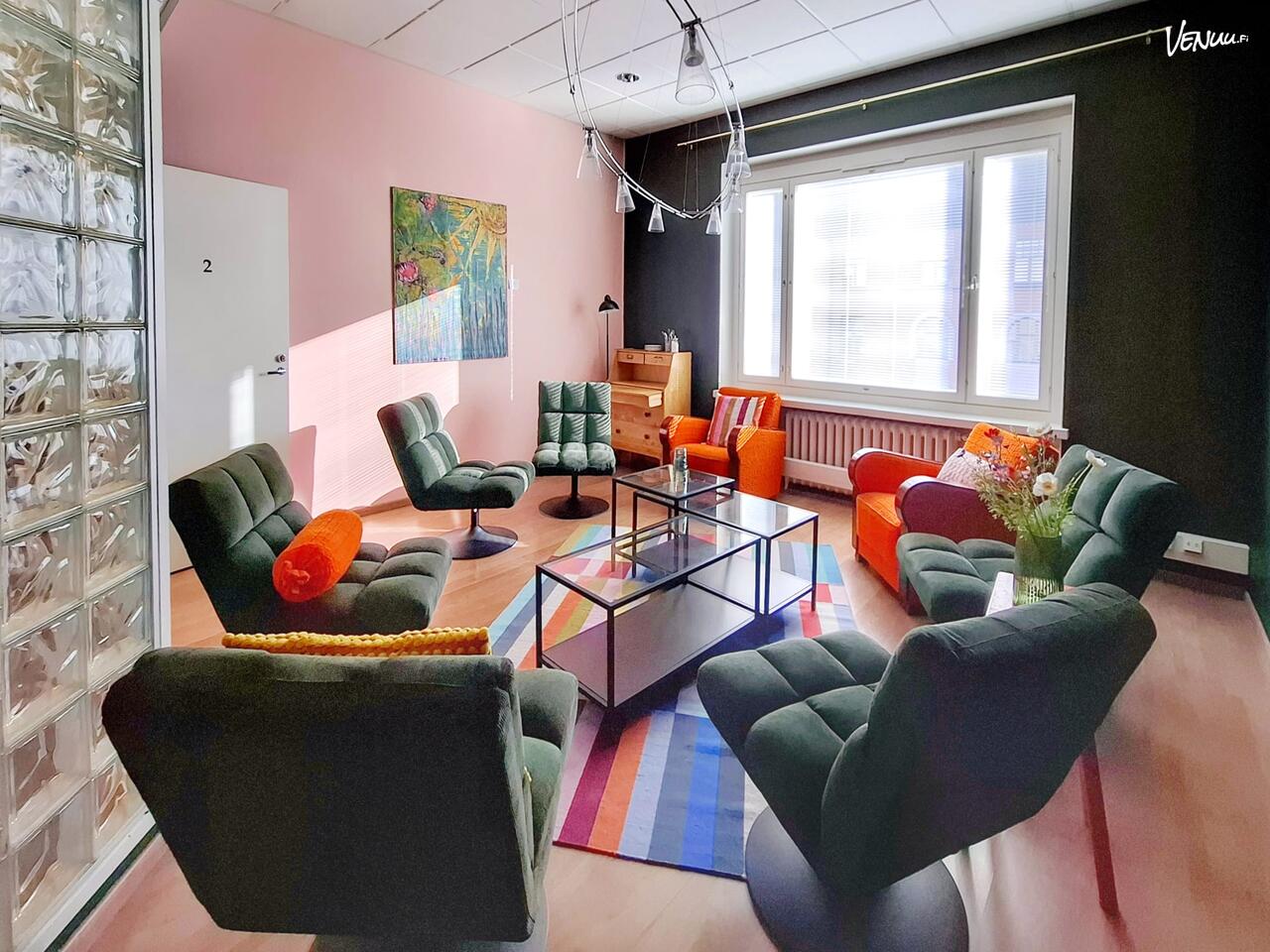 Tyäpajan Neuvotteluhuone tarjoaa mutkattoman ja rennon ympäristön monenlaisiin kokoontumisiin. Pehmeillä nojatuoleilla sisustettu tila kutsuu keskustelemaan, ideoimaan ja olemaan aidosti läsnä, olipa kyseessä työpaja, valmennus, terapiahetki, neuvottelu, ryhmätyö tai työhaastattelu. Tunnelma on kodikas ja sallii vaikka villasukat jalassa työskentelyn.