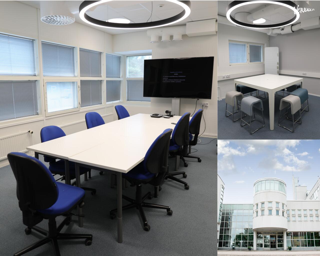 Kaikissa tiloissa on näyttö ja valkotaulu. Kysy lisää asiakaspalvelustamme!