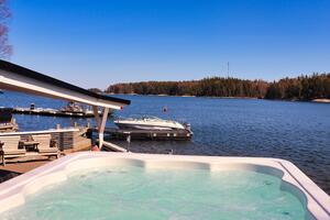 Suurella tontilla on esim. mökkejä, saunoja, palju, nuotiopaikkoja ja vesijettejä, joten tekemistä riittää kaikille.