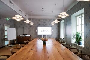 Sofian Helsingin Ellen-kabinetti Kiseleffin talossa saat sekä historiallisen miljöön että nykyaikaiset kokouspuitteet. Suuri näyttö, fläppitaulu ja luonnonvalo takaavat sujuvan kokouskokemuksen, kun taas Sofian ravintolapalvelut tarjoavat viimeistellyn lisän tilaisuuteen.