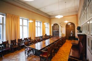 Historiaa huokuva Hallintohuone tarjoaa ainutlaatuisen kokousympäristön perinteikkäässä Vanhan Ylioppilastalon rakennuksessa! Suuret ikkunat, luonnonvalo ja upeat yksityiskohdat luovat arvokkaan tunnelman, jota moderni kokoustekniikka täydentää saumattomasti.