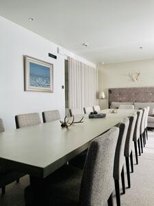 Tyylikäs kokoussviitti, jossa pohjoinen tunnelma yhdistyy moderniin luksukseen! Tilan sisustus, laadukkaat materiaalit ja rauhallinen ilmapiiri tekevät kokouksesta erityisen. Yksityinen ja viihtyisä tila, jossa kokoustaminen sujuu rennosti.