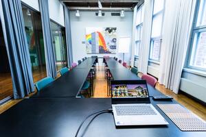 Moderni ja rento kokoustila tapaamisiin, ideointiin, kokouksiin ja workshopeihin. Tilassa nykyaikainen kokoustekniikka.