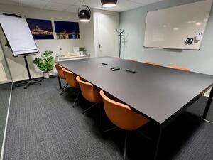 Kompakti mutta tehokas kokoustila 8 hengelle tarjoaa modernin varustelun, kuten screenin, valkotaulun ja nopean netin. Viihtyisä ympäristö luo hyvät puitteet tehokkaille neuvotteluille ja tapaamisille!