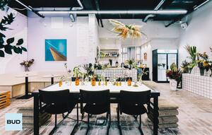 Kaunis ja leikkisä BUD on täydellinen tila juhlien, PR-tilaisuuksien, lanseerausten ja workshoppien järjestämiseen.