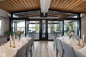 Tähän upeaan häätilaan voi saapua esimerkiksi helikopterilla tai rantautua vesitasolla. Kookkaalle tanssilattialle mahtuu iloisia jalkapareja jopa 200 ja ihastuttavassa pihapiirissä saa helposti järjestettyä vaikkapa vihkitilaisuuden!