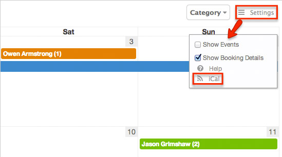 Syöte löytyy suoraan Settings-valikon alta, kohdassa iCal.