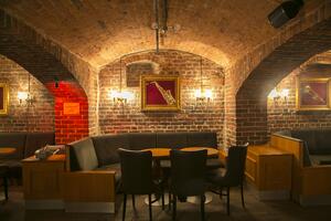 Ihanan tunnelmallinen kellari, jossa järjestyy upeat pikkujoulut! Täällä pääsee myös esittämään tanssitaitojaan tanssilattialle.