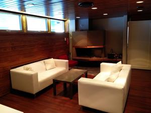 Isolla porealtaalla varustettu ylellinen sauna ja takkahuone Espoossa hyvien liikenneyhteyksien varrella.