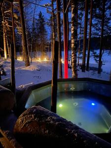 Tämä idyllinen sauna vain puole tunnin päässä Kouvolasta on täydellinen saunailtaan! Saunan valaistus ja lauteelle upotettu valaistu löylyvesiastia tuovat ihanaa tunnelmaa. Lauteille mahtuu kerralla 10 saunojaa.