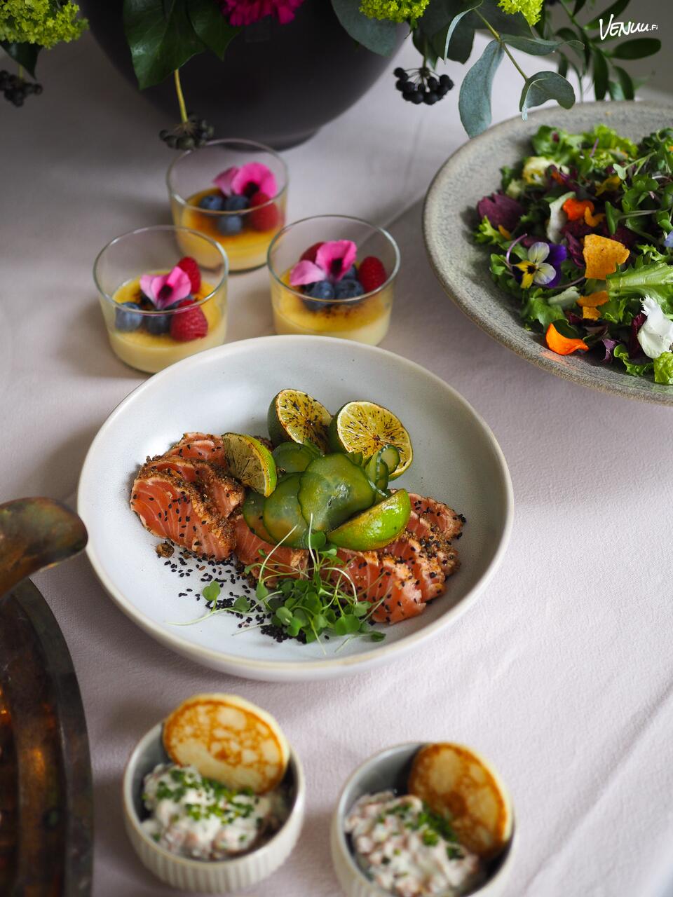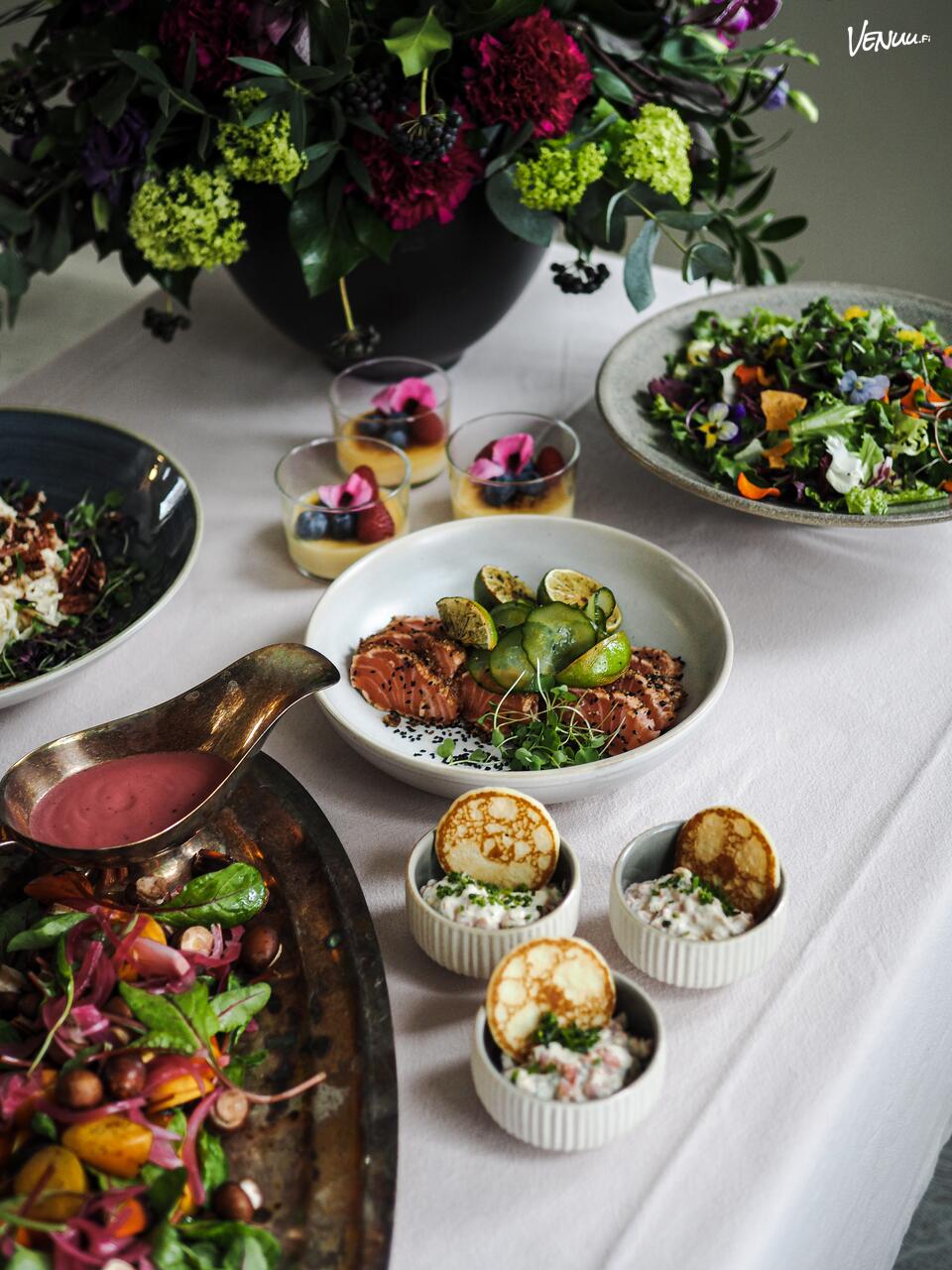 Kiitos cateringista, ruoka oli ihanaa ja tarjoiluastiat ja varsinkin korokkeet tosi kauniit ja hyvät!