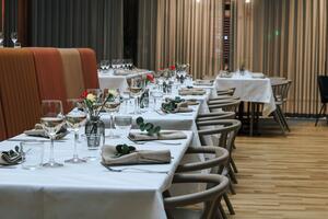 A stunning restaurant combines their modern space with great food and atmosphere. The spacious venue with high ceilings fits even 400 people!