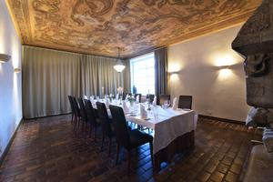 Hienoilla kattomaalauksilla varustettu tunnelmallinen kokoustila Home Hotel Jugend tiloissa.