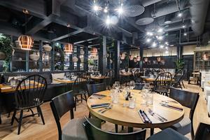 Tyylikäs ja moderni sisustus raikkaalla otteella tarjoaa upeat puitteet hääjuhlan järjestämiseen hyvän ruoan ja juoman kera.