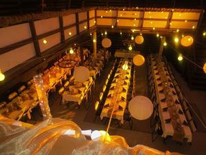 Vanhaan talliin rakennettu tunnelmallinen juhlatila.