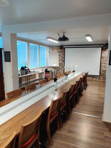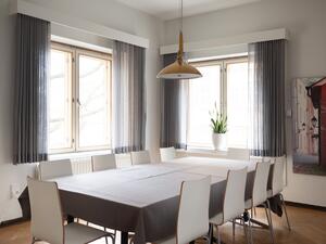 Kårenissa on useita erikokoisia tiloja kokouksiin ja yritystapahtumiin, joista tämä pienin sopii 10 hengen poppoolle. Tyylikkääseen kokoushuoneeseen saatte tarjoilut suoraan tilan kautta.