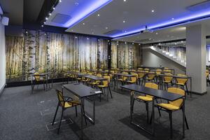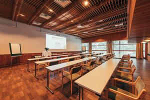 Ihastuttavassa hotellissa sijaitseva kokous- ja workshoptila muotoutuu myös pienempiin konferensseihin.
