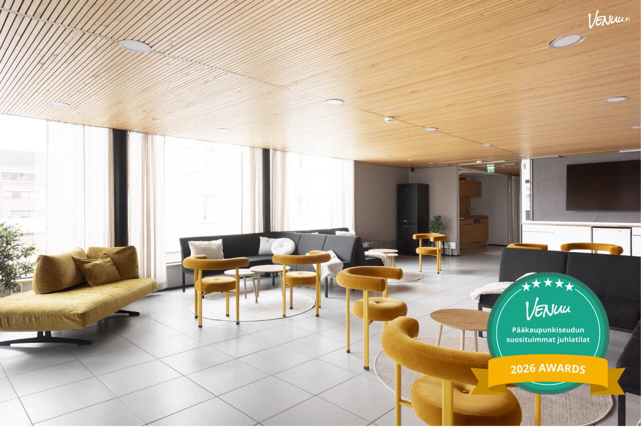 Iso upea tila! Sopi hyvin 30 hengen juhliin, kaikki mahtuivat istumaan ja tilaa oli tarpeeksi. Olisi kiva, jos tilaan saisi joillain erillisillä lampuilla tunnelmavalaistusta. Kun kattovalot laittaa päälle, valaistus on vähän liikaa.