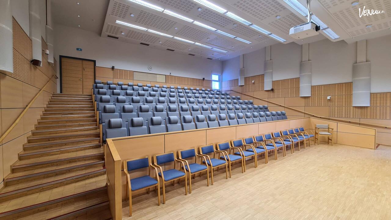 Auditorio soveltuu hyvin sekä asiapitoisiin tilaisuuksiin että suurempiin esityksiin. Esteetön kulku tekee tilasta helposti saavutettavan kaikille osallistujille, ja myyntipalvelu auttaa mielellään tapahtuman suunnittelussa.