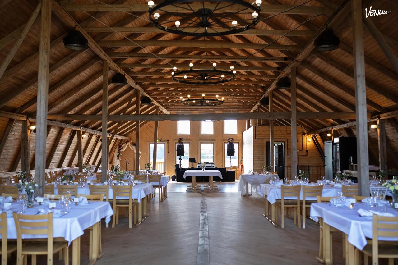 Tämä juhlatila yhdistää kätevän sijainnin, maalaisidyllin ja rennon tunnelman – täydellinen paikka kokoontua, juhlia ja nauttia hetkestä yhdessä.