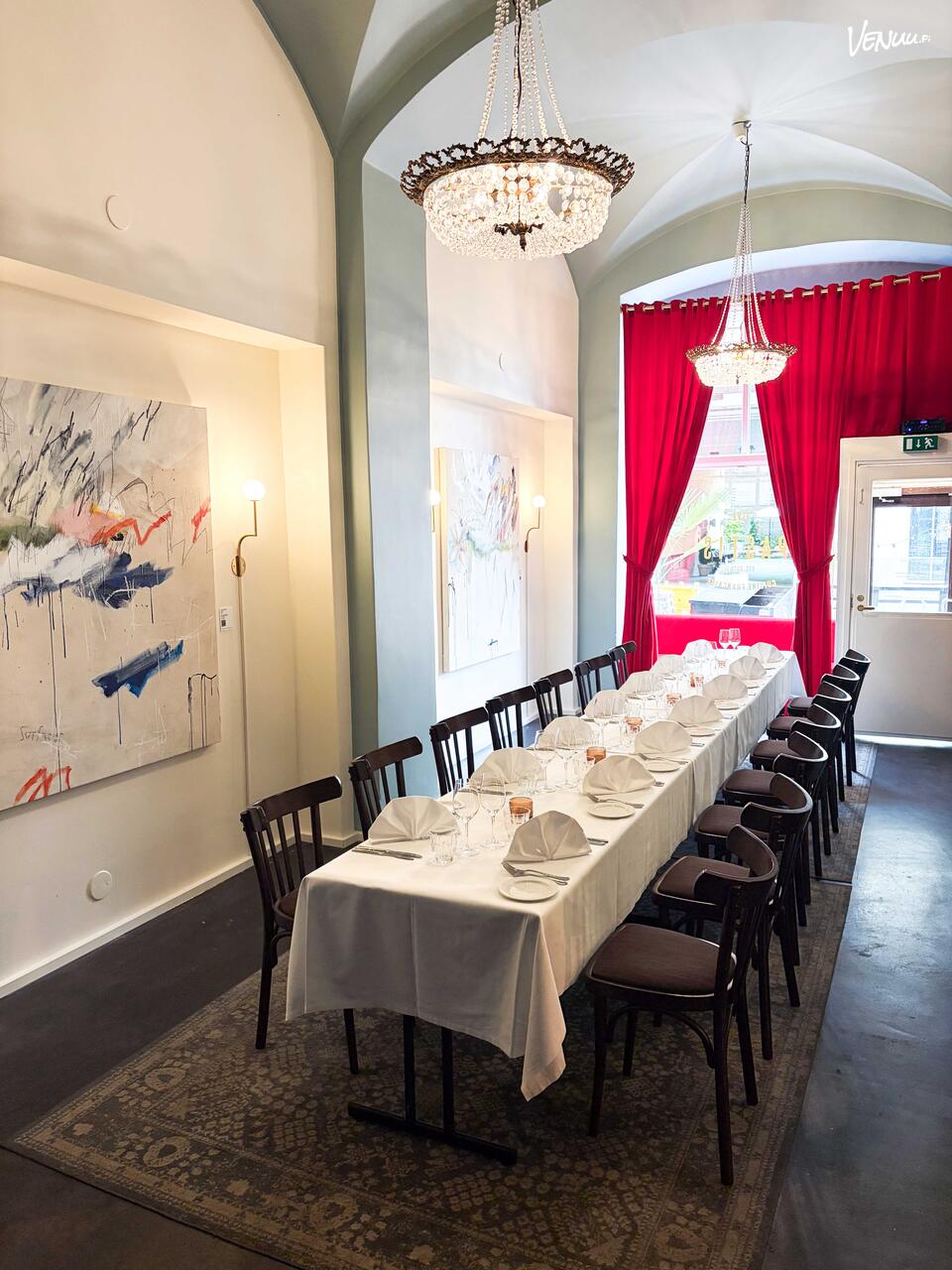 Kabinetti soveltui hyvin syntymäpäiväjuhliin. Loistava menu, jonka rinnalla upea viinilajitelma. Hyvin joustava moitteeton palvelu.Tullaan varmasti uudelleen ravintolan puolelle.