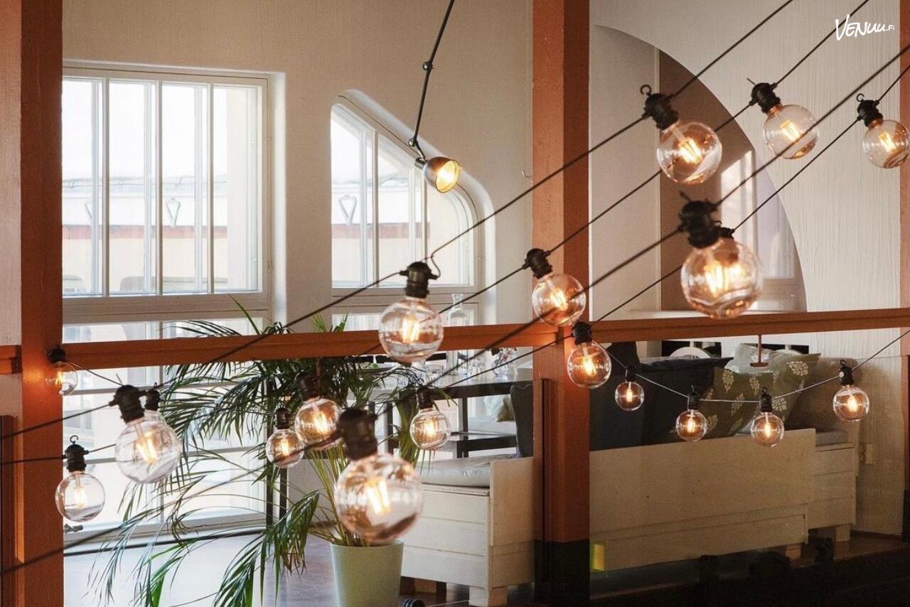 Tilamme sijaitsevat viihtyisässä Hietalahden kauppahallissa aivan Helsingin sydämessä. Ravintolassa on upeat isot ikkunat, jotka pääsevät erityisesti yläkerran tiloissa esille, joten luonnonvalosta ei ole puutetta.