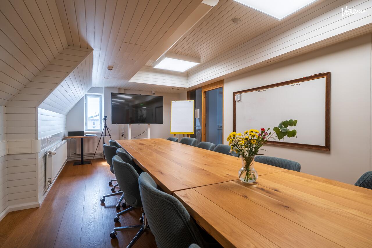 Reippaan kokoinen hyvällä valolla varustettu tila, johon mahtuu noin 20 henkilöä saman pöydän ääreen ja muutoin tilaan mukavasti noin 30 henkilöä. Tilasta löytyy esitystekniikan ja kokoustarvikkeiden lisäksi pieni keittiö, lisähuone esimerkiksi puheluille, oleskelutila jossa on useampi nojatuoli ja sohva sekä äänieristetty kokoushuone, jonne mahtuu noin 5-6 henkilöä.