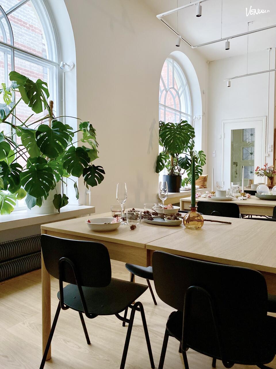 Tilan kalusteita on helppo siirtää tarvittaessa ja pöytiä ryhmitellä tilaisuutta palvelevaksi kokonaisuudeksi.