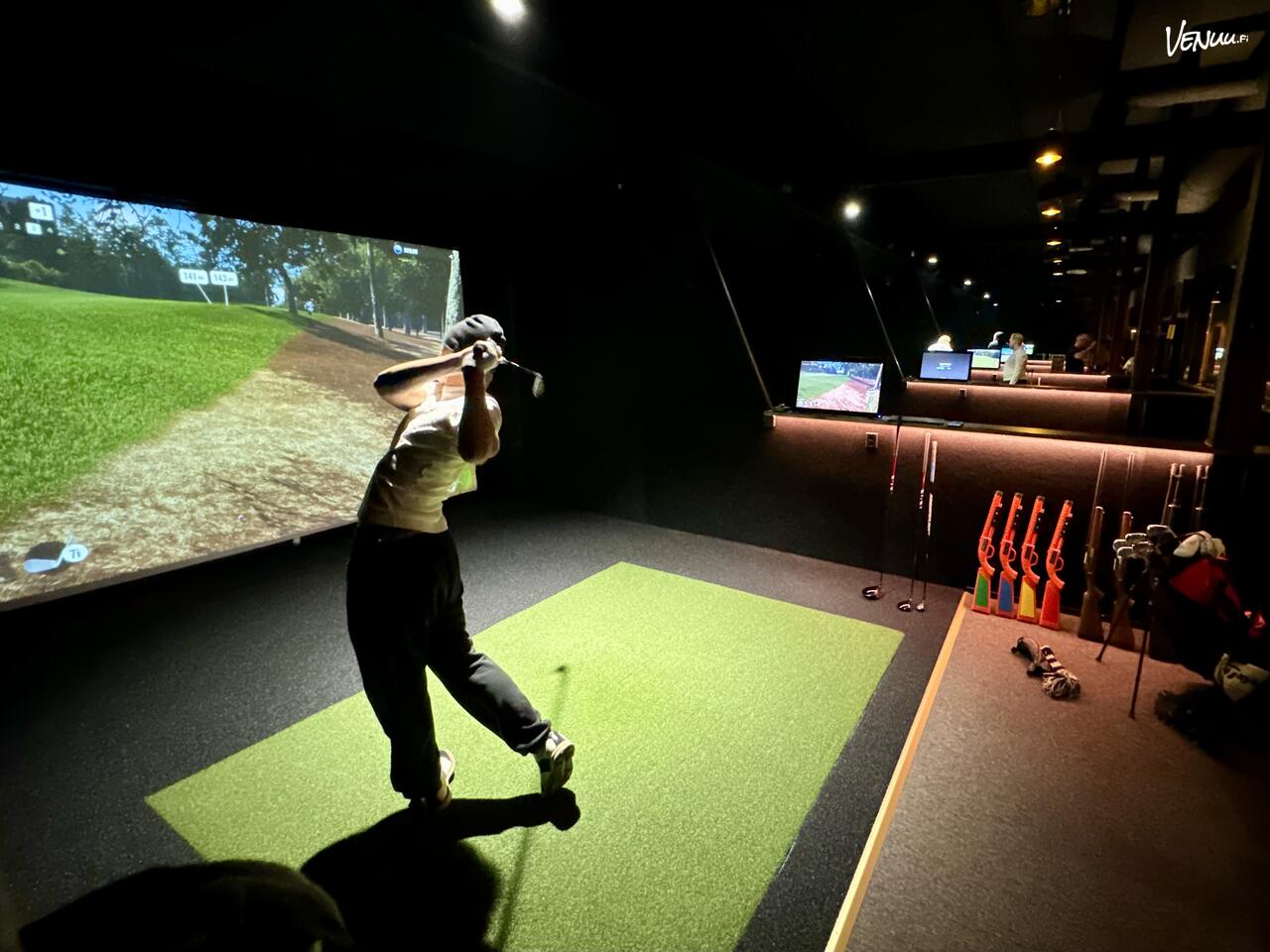 Golfsimulaattori sopii loistavasti vaikkapa yrityksen tykypäivään, polttareiden ohjelmanumeroksi tai illanviettoon kaveriporukan kesken.