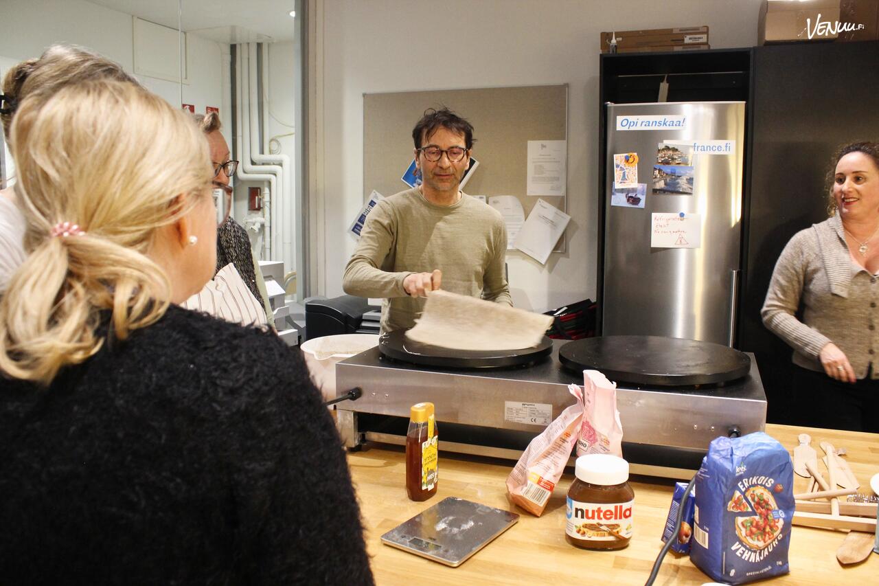 Työpaja on osallistava ja lämminhenkinen, ja se tarjoaa mahdollisuuden harjoitella ranskan kieltä rennossa ilmapiirissä. Illan päätteeksi nautimme yhdessä valmistamianne lettuja tapahtumatilassamme, täydentäen makuelämyksen valitsemallanne juomalla ja musiikilla. Tämä on täydellinen tilaisuus yhdistää ruoanlaitto, kulttuuri ja kieli elämyksellisellä tavalla – tutustua ranskalaiseen tapaan nauttia hyvästä ruoasta ja seurasta.