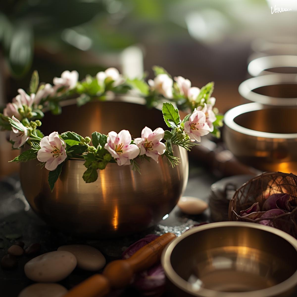 Äänimaljoja ja kukkaseppeleitä/kransseja tarjoilee hyvää oloa ja rentoa meininkiä rentouttamalla mielen sekä kehon.