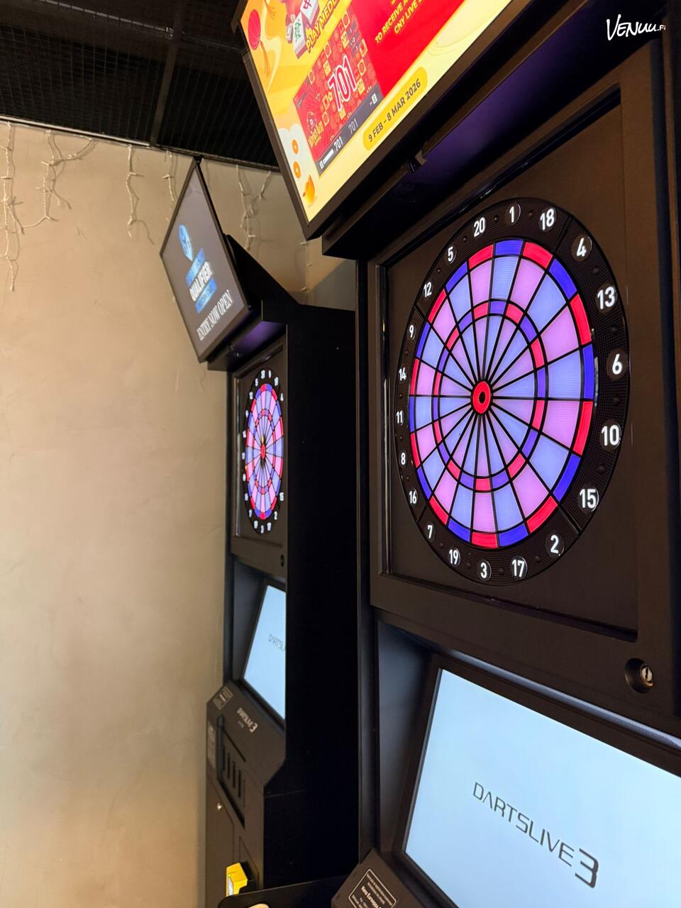 Darts-laitteita on kaksi, ja yhdellä laitteella voi pelata enintään neljä henkilöä kerrallaan.