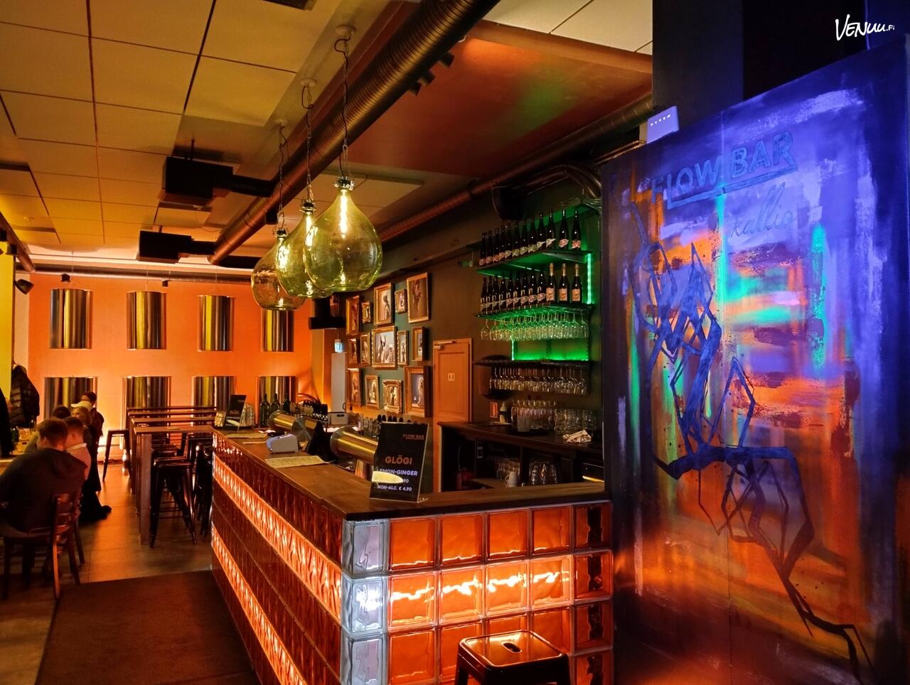 Tila oli viihtyisä ja syntymäpäiväjuhlat oli helppo rakentaa sinne. Toin oman syntymäpäiväkakun ja tilasin snacks-buffetin sekä alkumaljat Flowsta. Vieraat ostivat omat juomansa ja ruokansa. Päivän tarjousdrinkki oli minun valitsemani ja sain nimetä sen itse. Oman musiikin soittaminen Spotifystä oli mahdollista. Henkilökunta oli ystävällistä. Tammikuussa ei ollut tilavuokraa eikä myyntitakuuta, tämä vaikutti ratkaisevasti paikan valintaan.