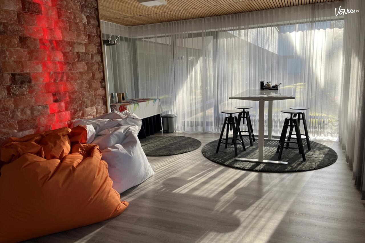 Järjestä erilainen kokous säkkituolissa rentoutuen, pöytään suunnitelmia piirrellen ja suolaseinän väriterapiasta nauttien.
