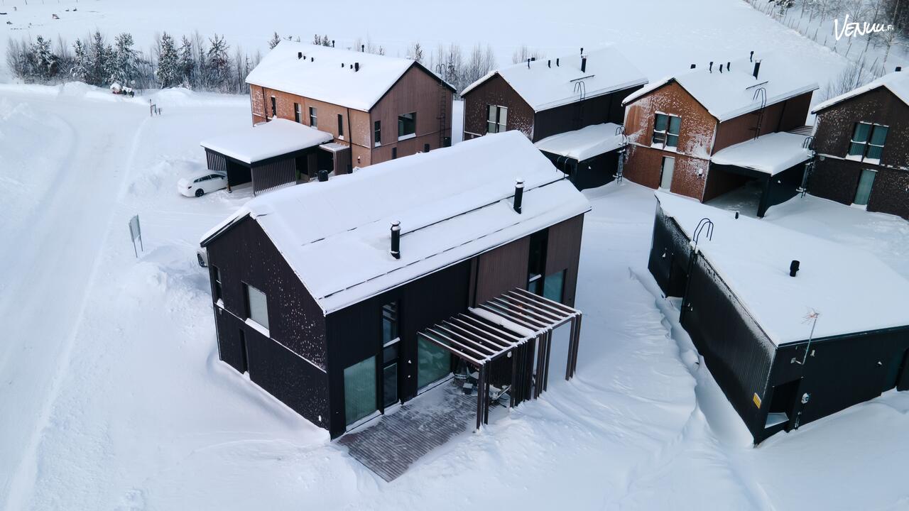 Yksityinen terassi ja ympäröivät ulkoilumahdollisuudet tarjoavat luontevan tavan yhdistää työ ja palautuminen Lapin rauhassa. Lisäksi vieraiden käytössä on huvilan pihapiirissä sijaitseva erillinen laavu sekä saunarakennus, jossa on saunan lisäksi takkahuone, ulkoporeallas sekä laituri, josta on mahdollisuus pulahtaa järveen.