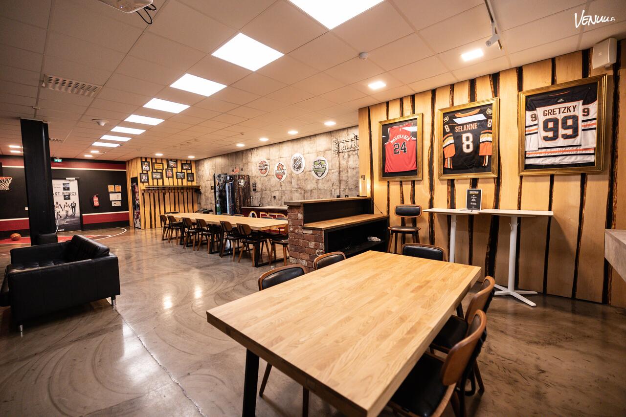 Sauna, oleskelutilat ja aktiviteetit muodostavat kokonaisuuden, jossa tekeminen ei lopu kesken. Täällä yhdistyvät liikunnallinen tunnelma ja rentoutuminen tavalla, joka jää mieleen. Tilaan voi tuoda omat tarjoilut tai hyödyntää talon ravintolapalveluita – ratkaisu joustaa tilaisuuden mukaan.