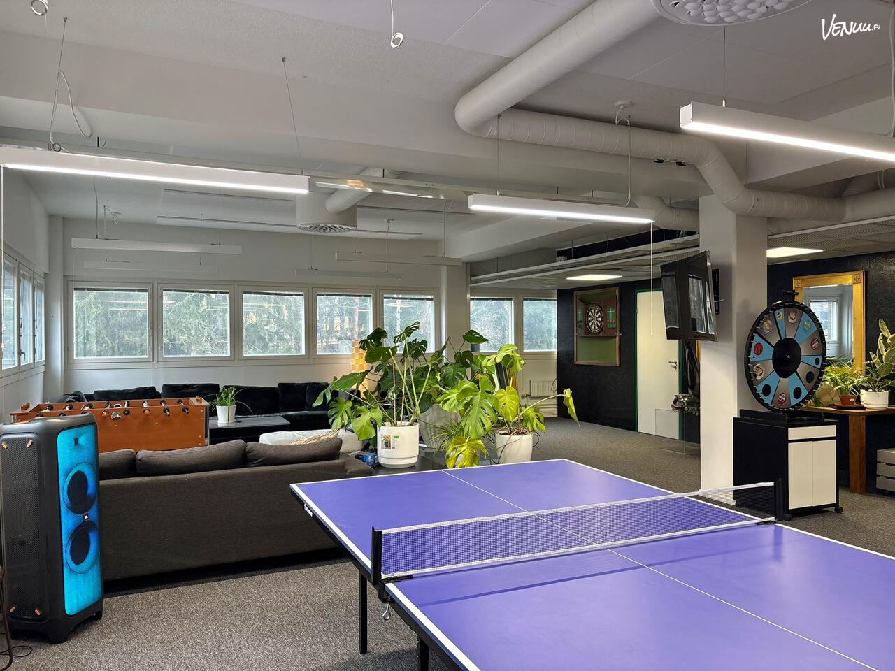 Tilasta löytyy lisäksi mm. pingiispöytä, pöytäfutis, darts-taulu, pleikka 3 sekä lautapelejä.