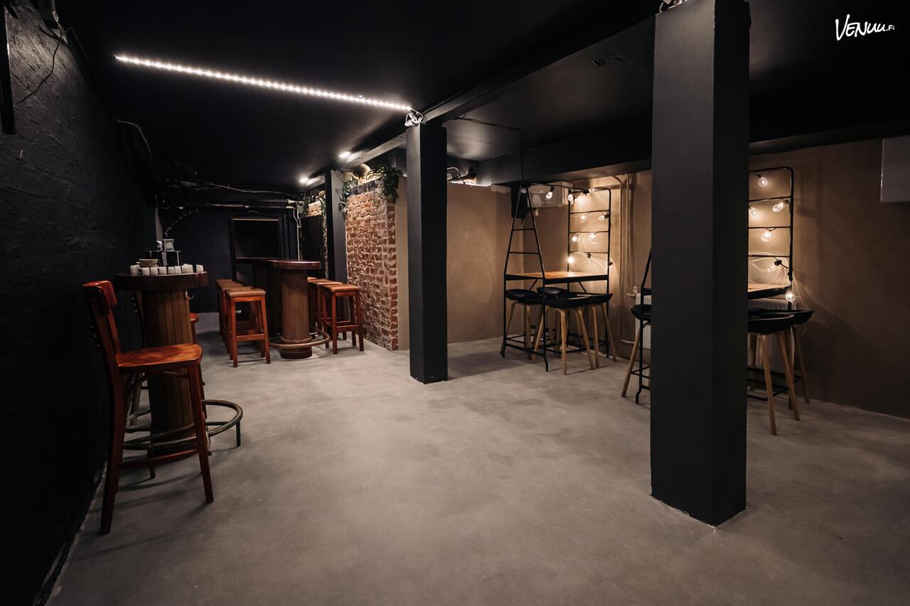 Tilasta löytyy monipuolista tekemistä, joka pitää tunnelman yllä koko illan ajan. Käytössä on tanssilattia, karaokelaitteisto, darts-huone sekä pöytäfutis, joten jokaiselle vieraalle löytyy tekemistä. Viihtyisät oleskelutilat ja tunnelmallinen valaistus luovat rennon ympäristön yhdessäololle. Tila sopii yhtä hyvin vauhdikkaaseen juhlintaan kuin rentoon illanviettoon.
