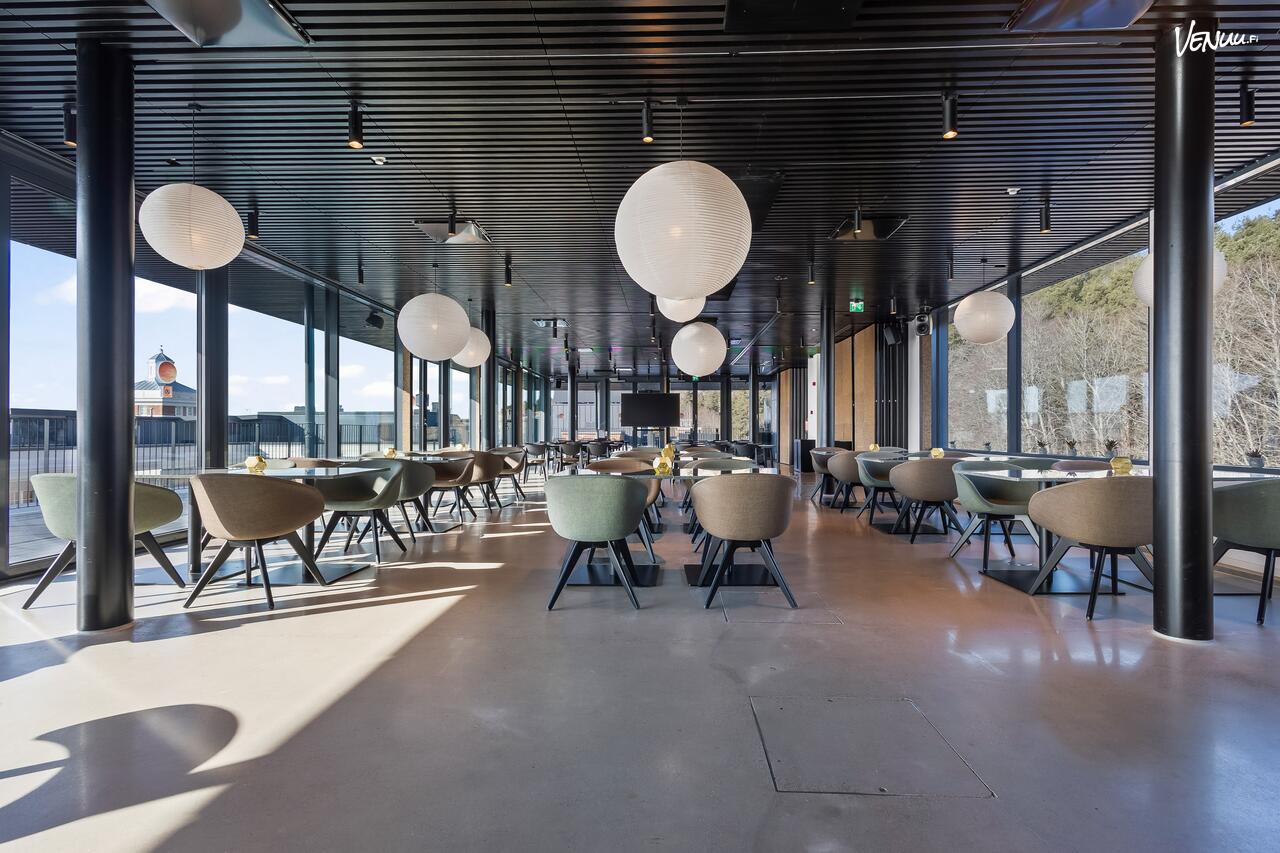 Suuret ikkunat ja oma terassi avautuvat Pyynikin harjulle, tehdaspiipulle ja Pyhäjärvelle, luoden upean taustan tilaisuudellesi. Tila sopii jopa 100 hengelle, joten suuremmatkin tilaisuudet onnistuvat Loom Pyynikissä.